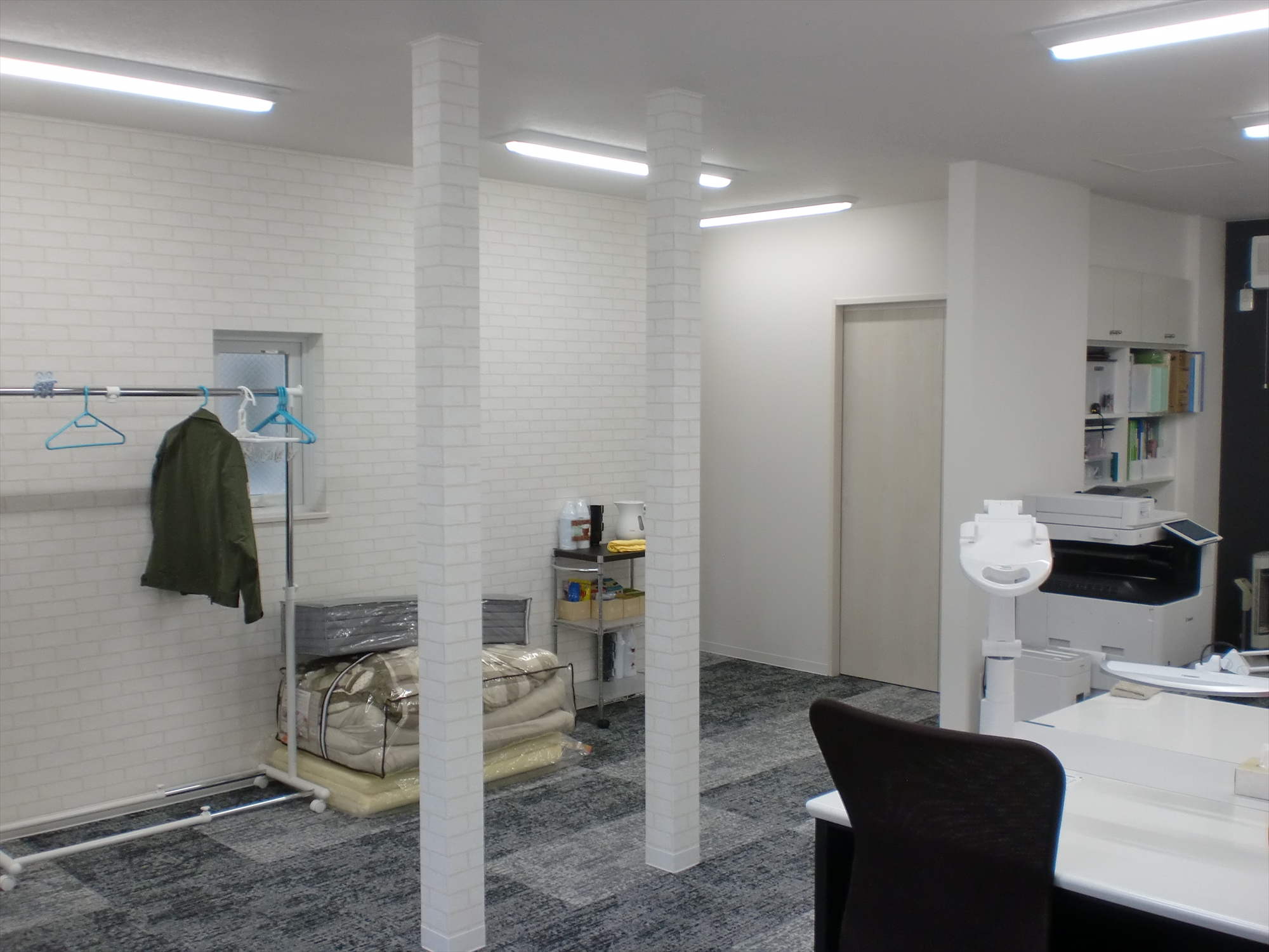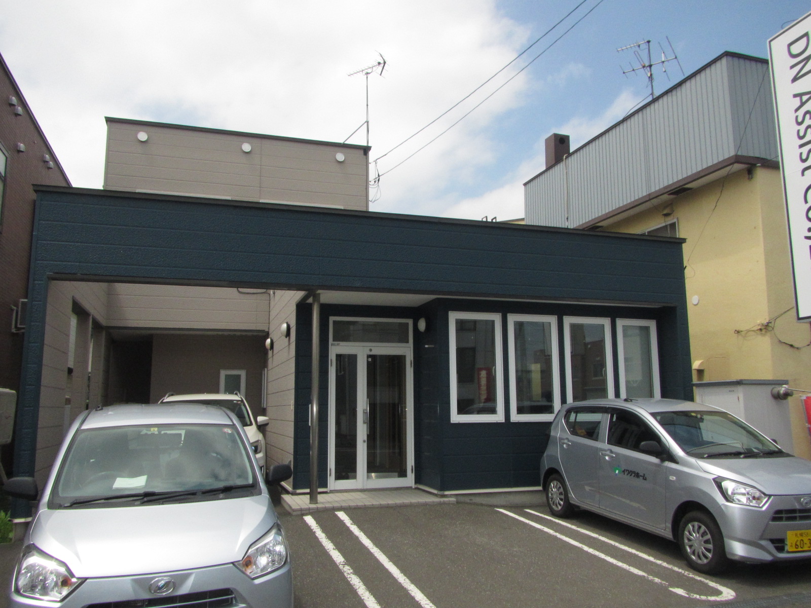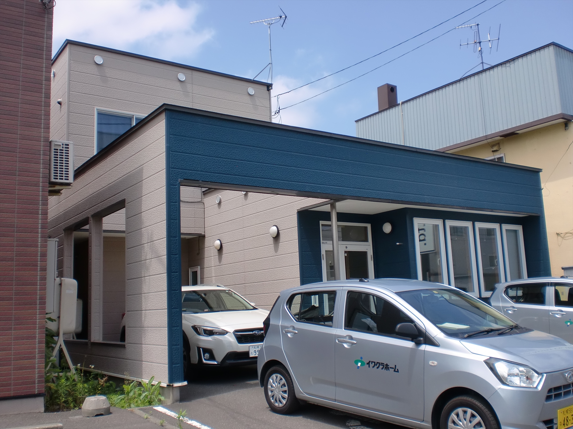 診療所だった建物を事務所として使用していましたが、「もっと快適にしたい!」と改修をご希望されました。カーポートは雪の処理が大変なため屋根とシャッターを付けて車庫に変更し、防犯上を考慮して玄関の入口を正面から車庫側へ移動しました。また車庫の上はバルコニーとしました。内部は間仕切壁を一部取り除いて広い空間へ。1階のトイレは男女別々に設置。2階にはトイレの他にシャワールームも設置しました。