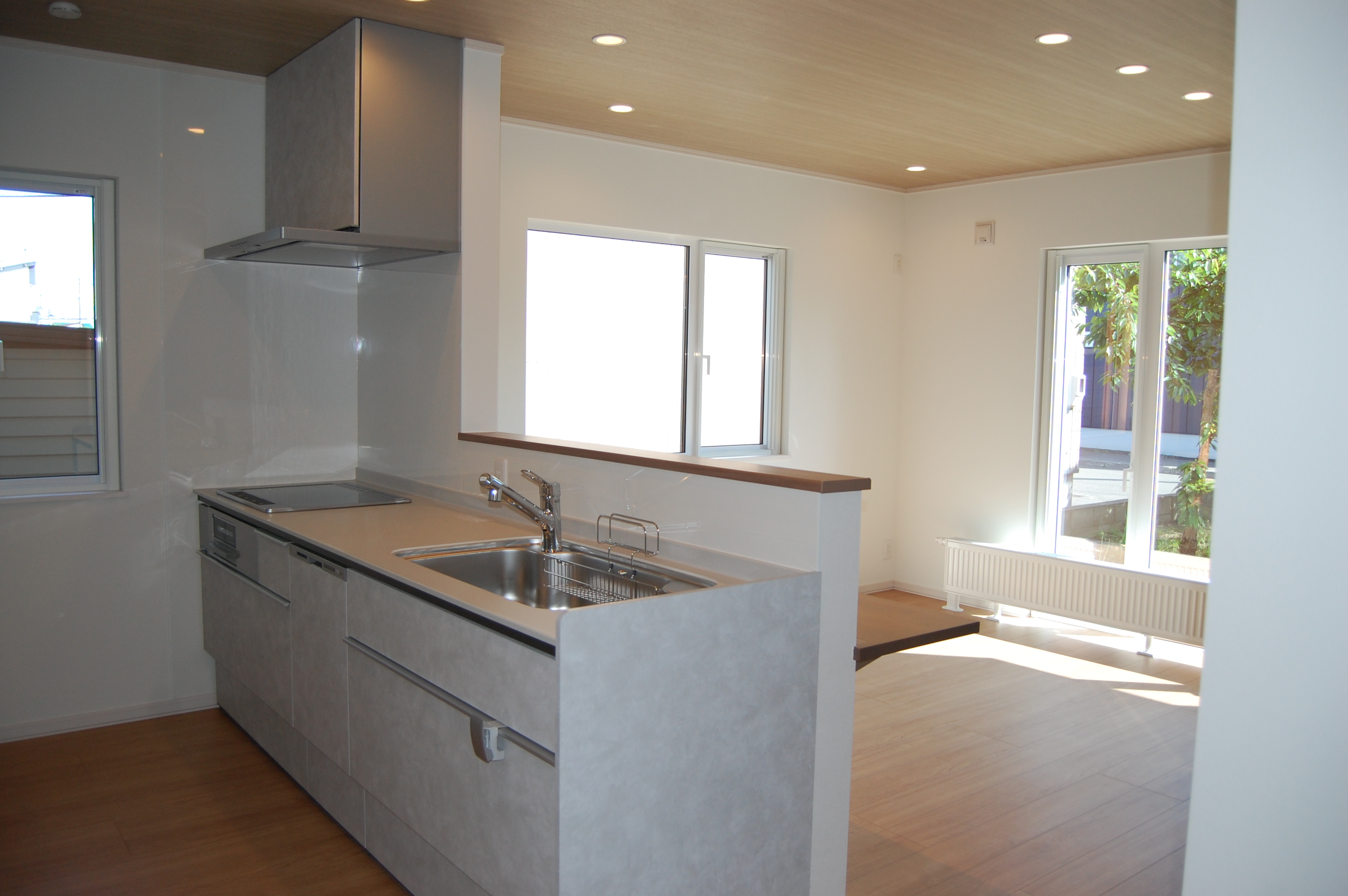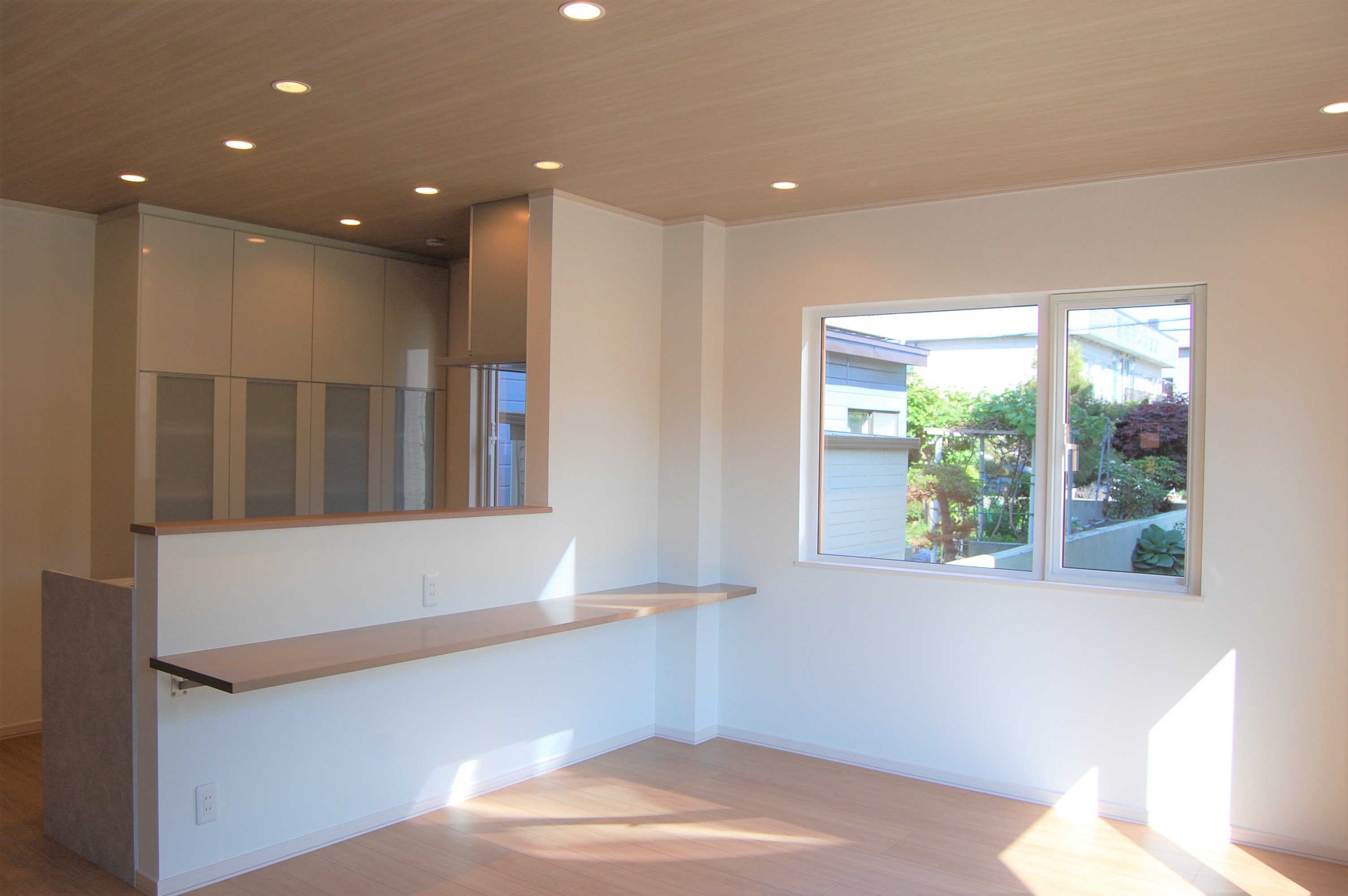 狭くて暗かった台所を対面キッチンへ変更。下がり壁を撤去し吊戸も無しにして開放的で明るくしました。お客様の要望でキッチン前には食事ができるようにカウンターを取り付けました。