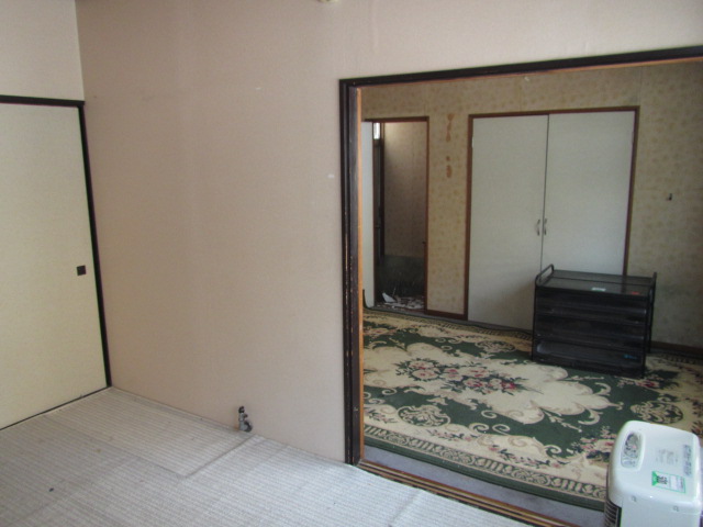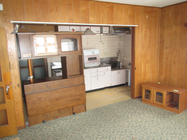 壁と下がり壁を撤去し1つの部屋へ。奥の勝手口と押入部分は減築しています。