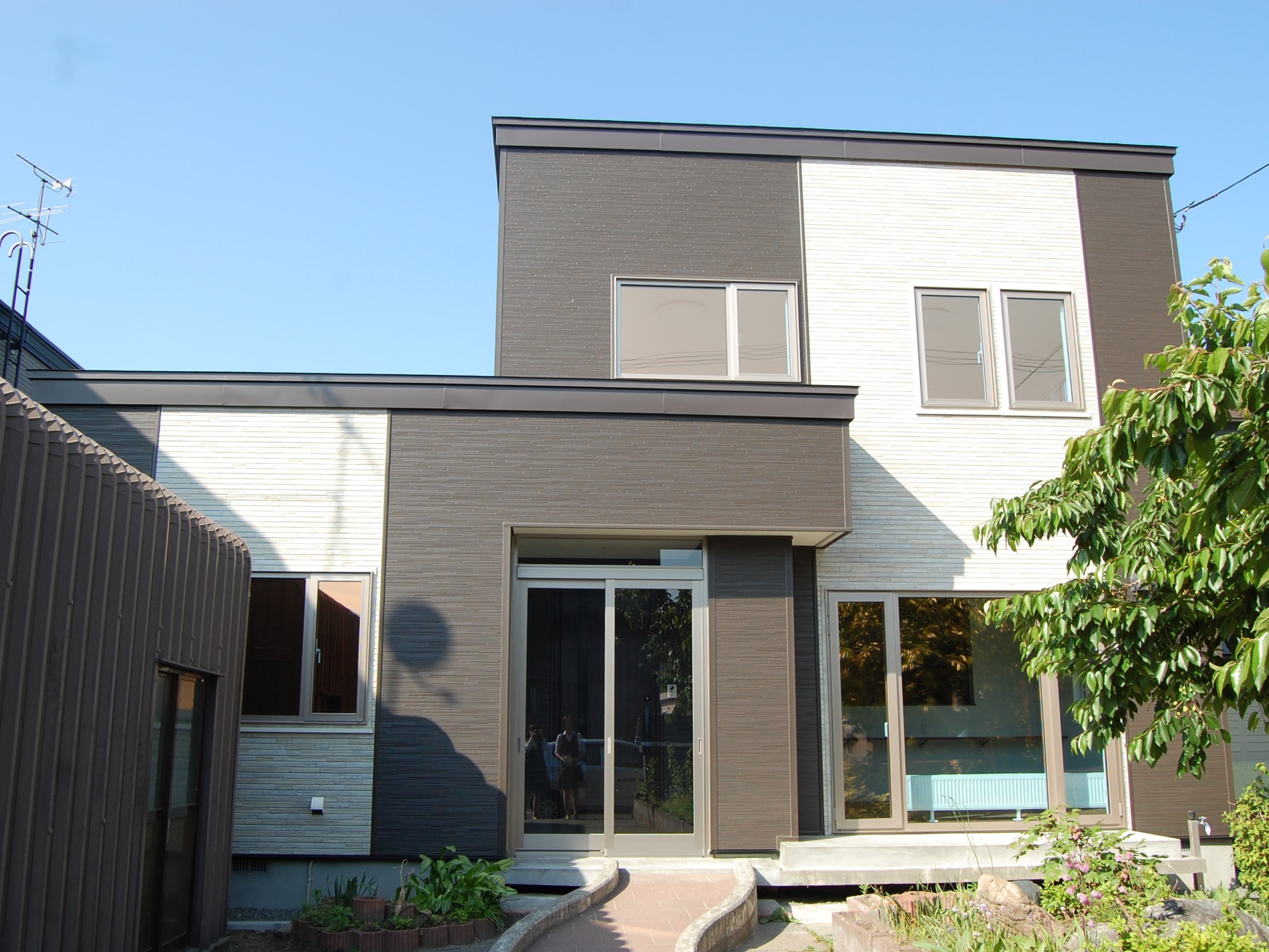 煙突・ベランダ・サンルーム・意匠壁を撤去し、屋根型もすっきりさせました。窓も全部断熱性の高い樹脂サッシへ交換しました。