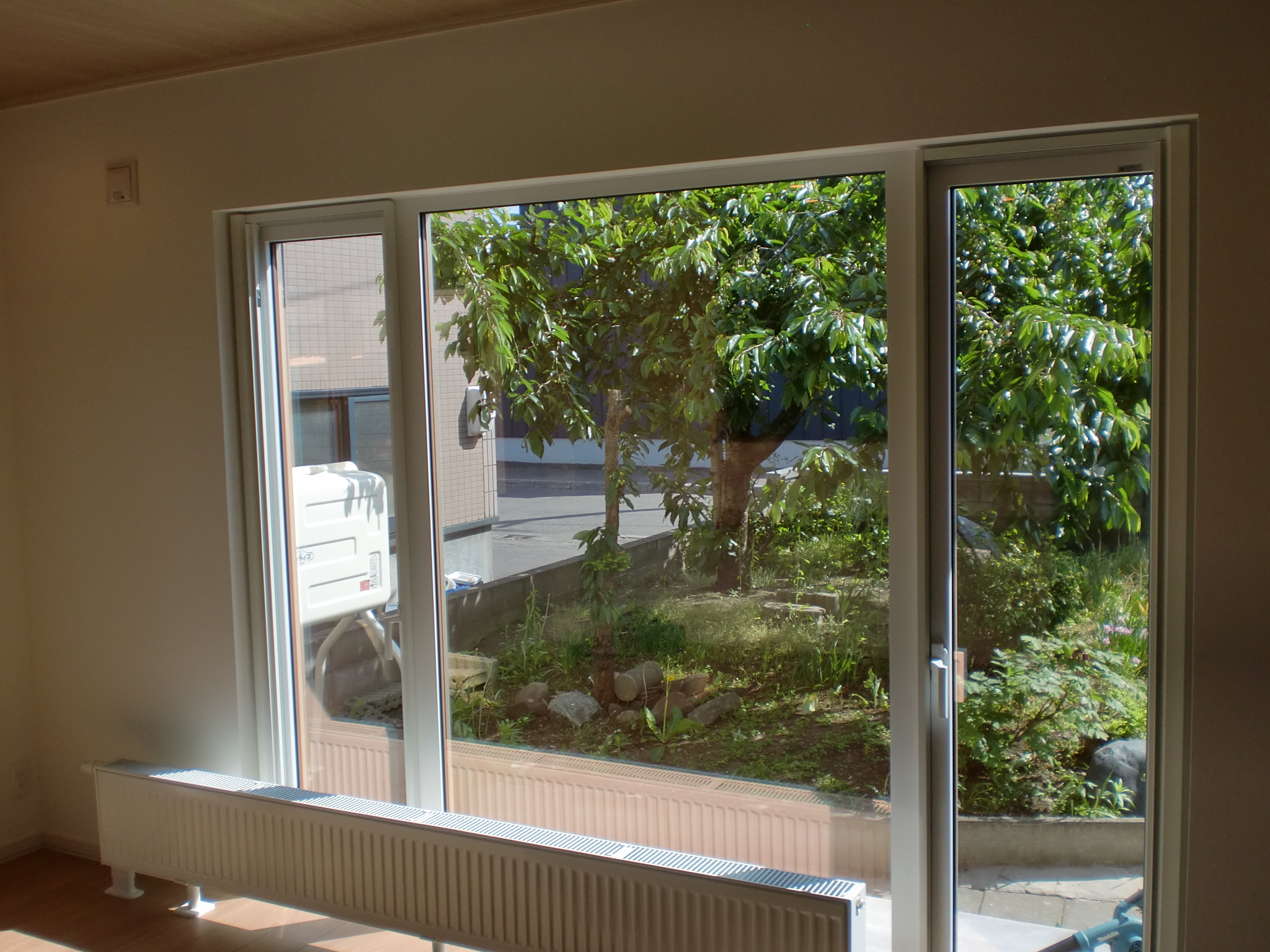 ペチカとサンルームを撤去したことで明るく広々としたリビングに生まれ変わりました。