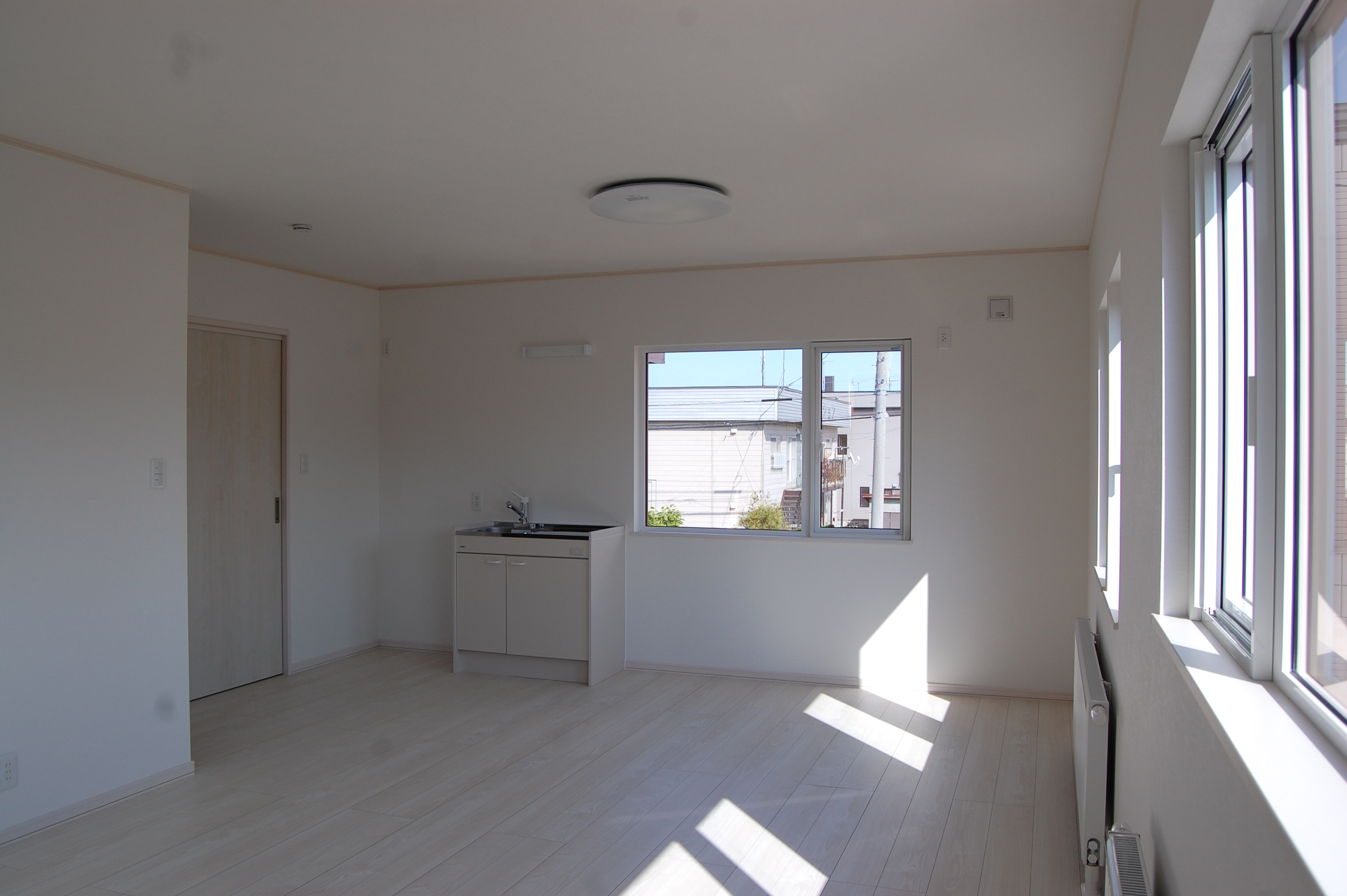 下り壁を撤去して左奥は1.5帖広くしました。ミニキッチンを設置しました。