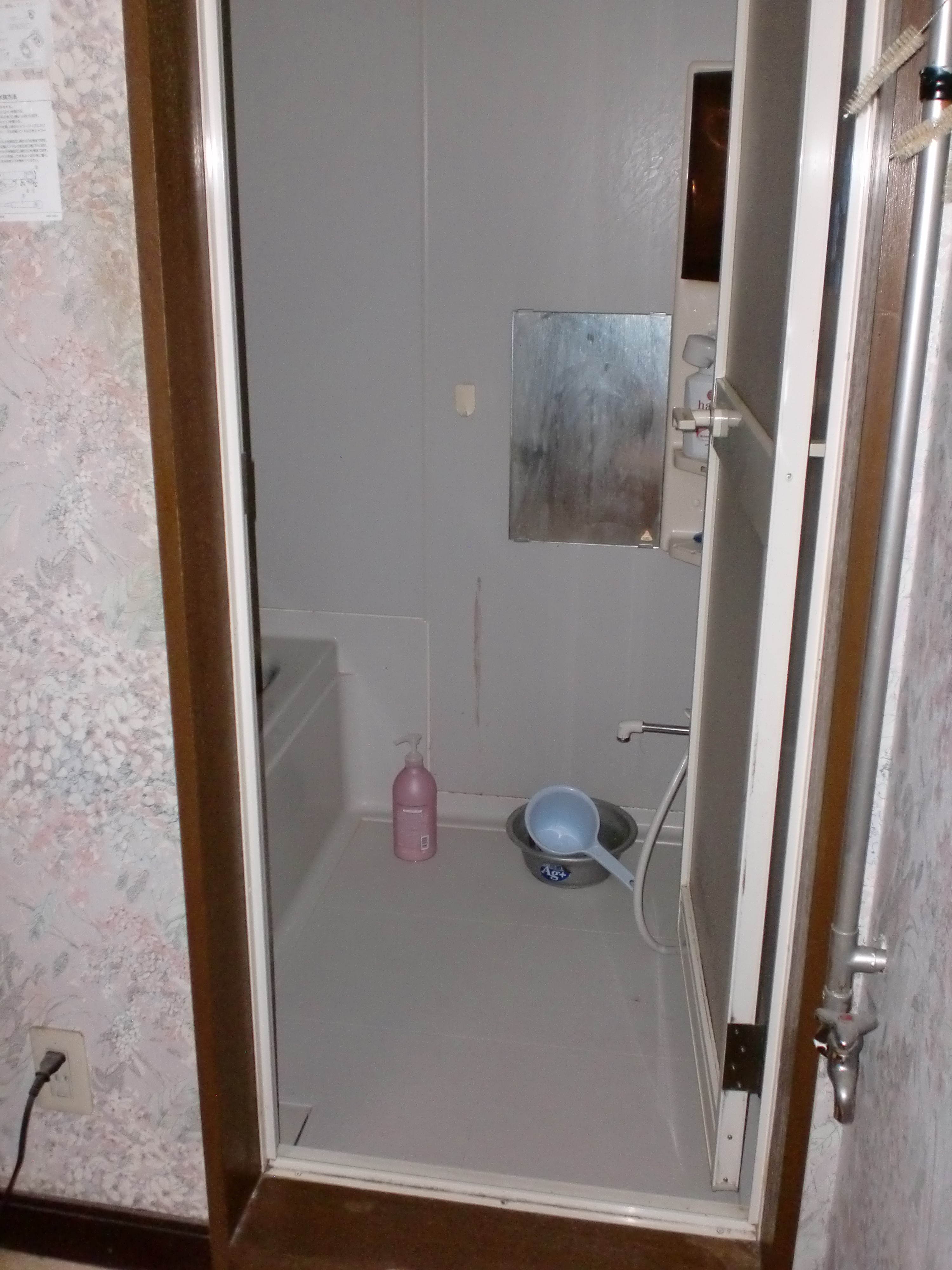 物置部分を減築したのでドアは撤去して、そこに洗面台を設置しました。