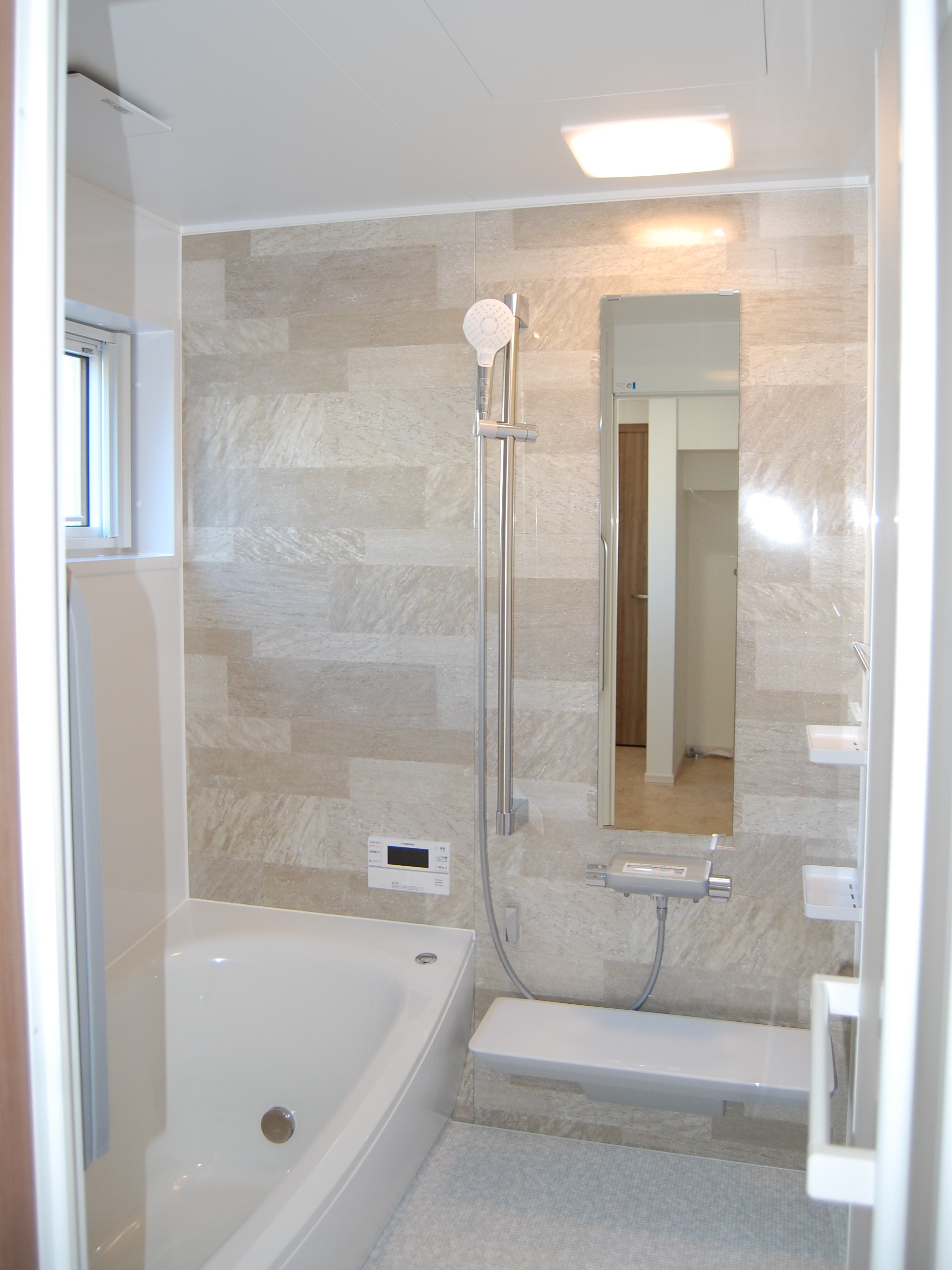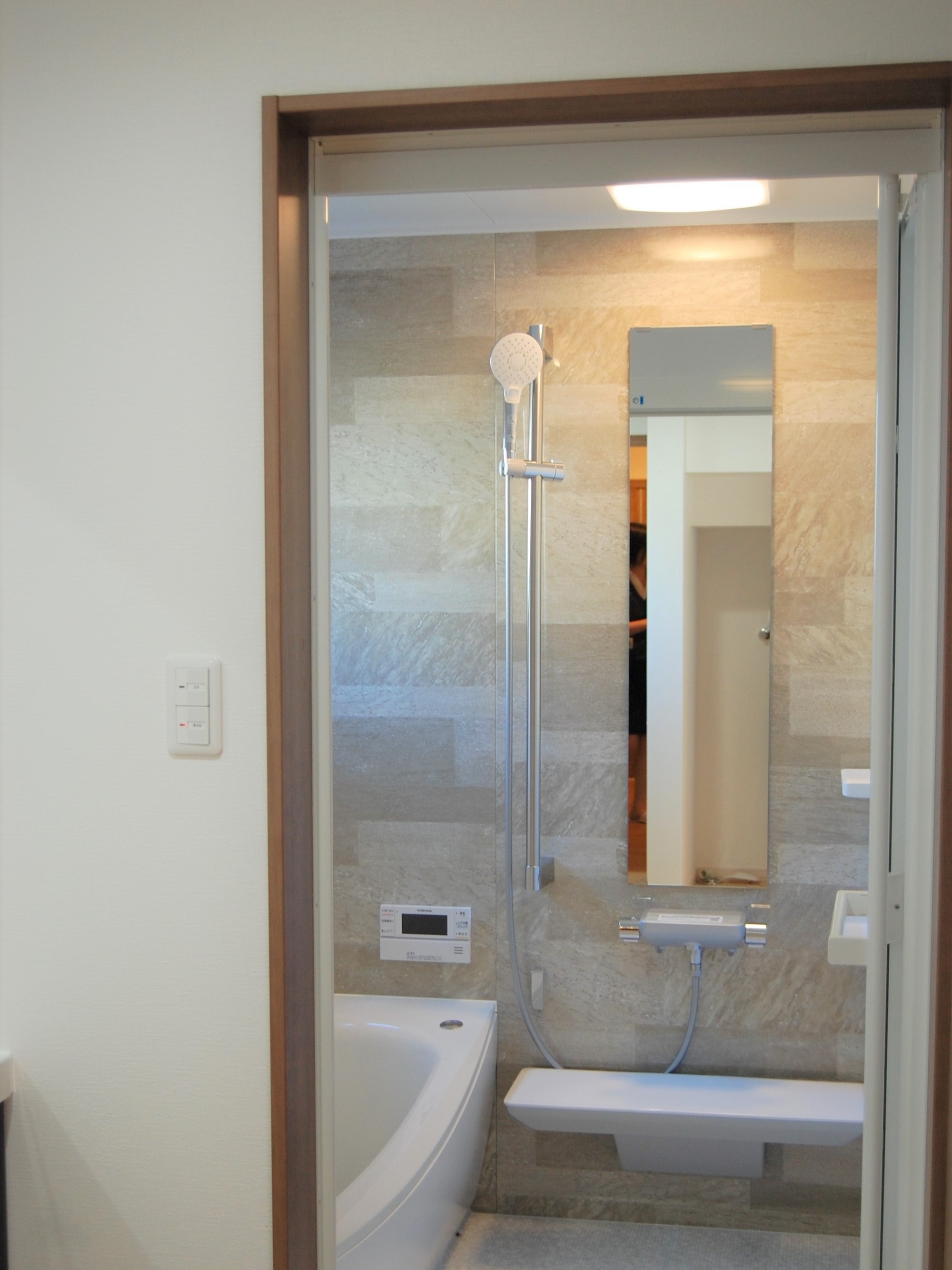 0.75坪から1坪タイプのユニットバスに交換。浴室の入口の段差がなくなりました。
