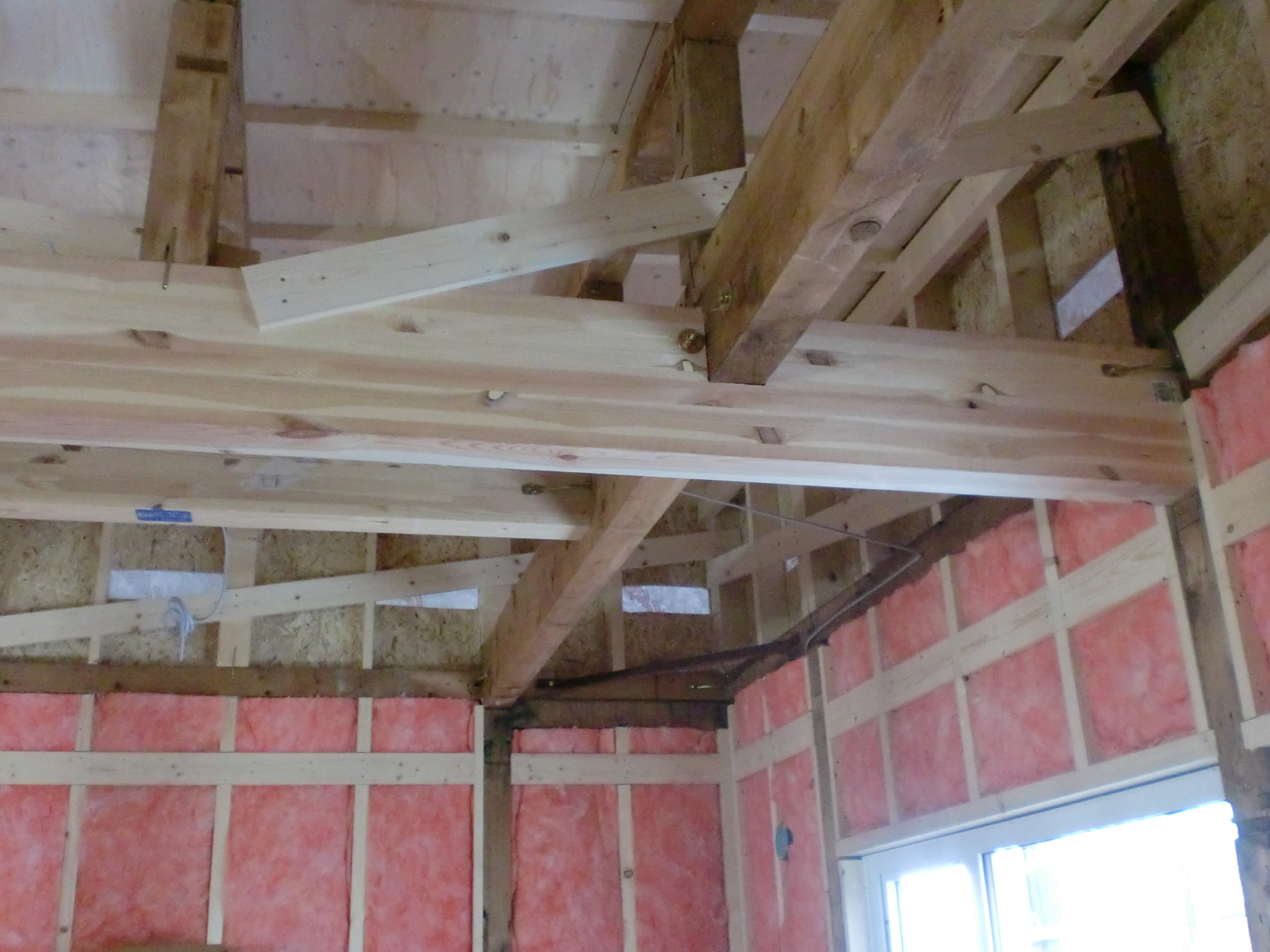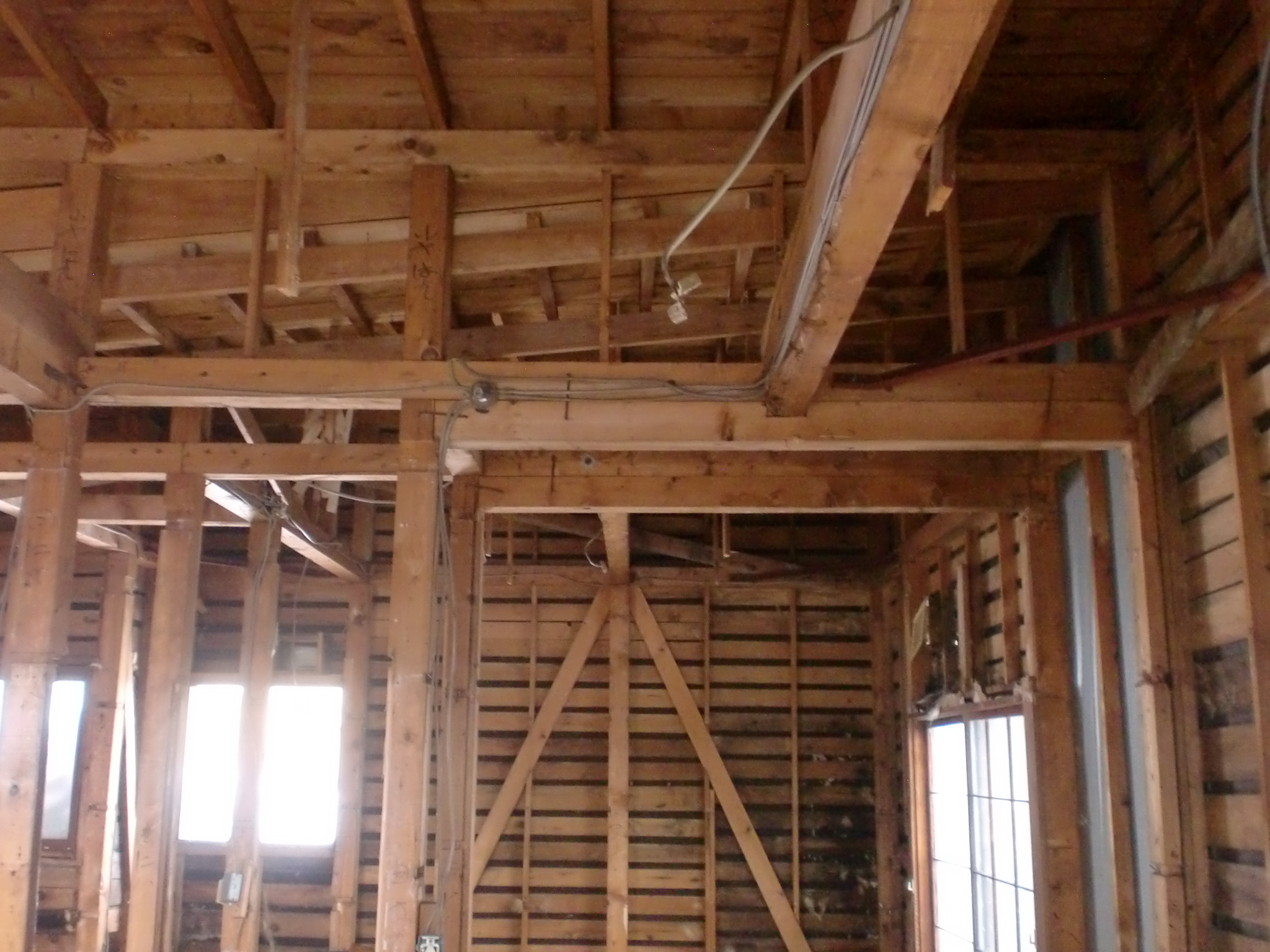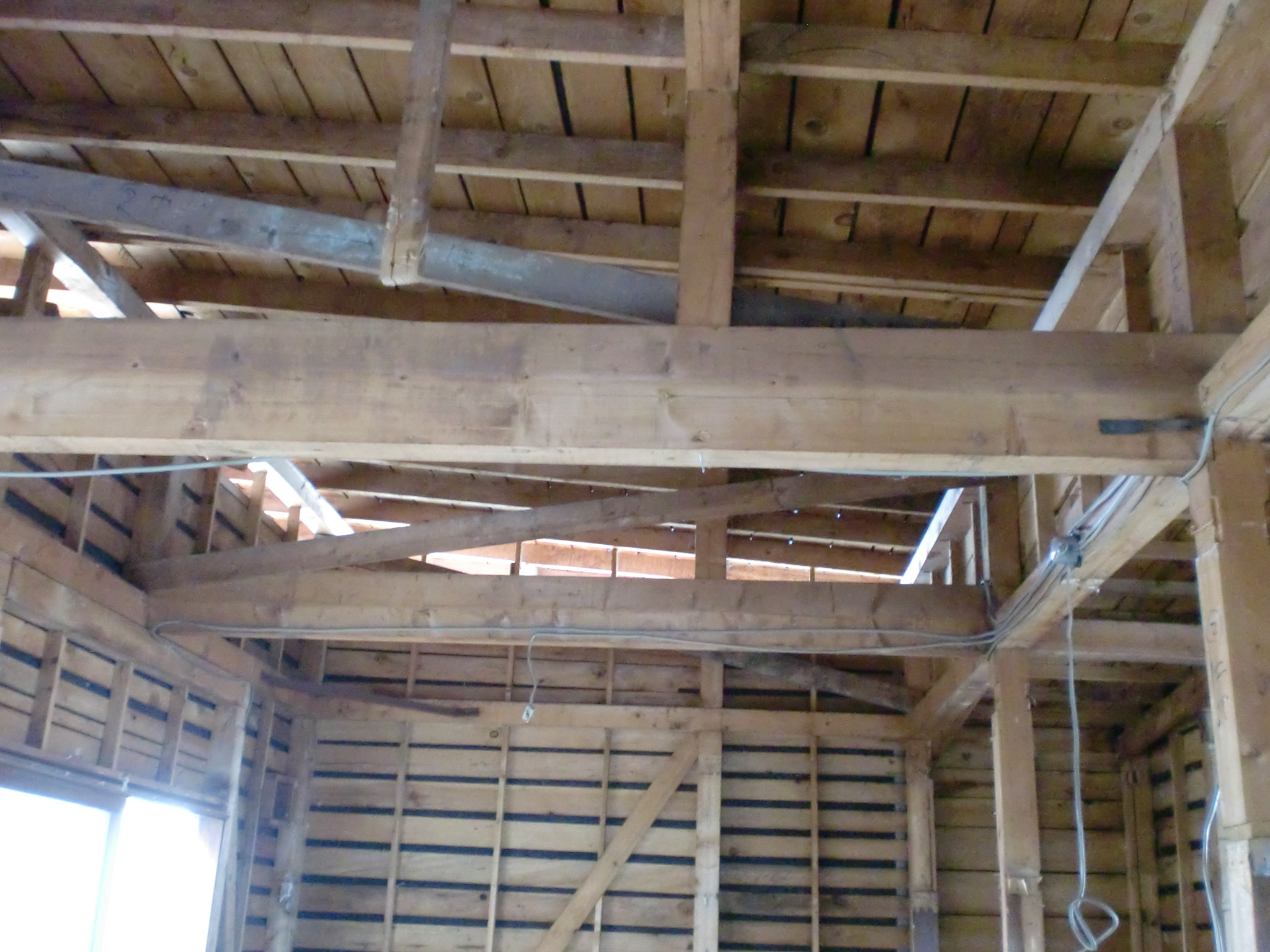 図面の無い建物だったため、スケルトン状態の時に基礎・柱・梁・筋かい等の位置を確認。それをもとに構造計画を考えました。屋根に雪が積もっても大丈夫なように梁や柱を補強し、外壁には全面構造用パネルを張り地震に対して強くしました。
