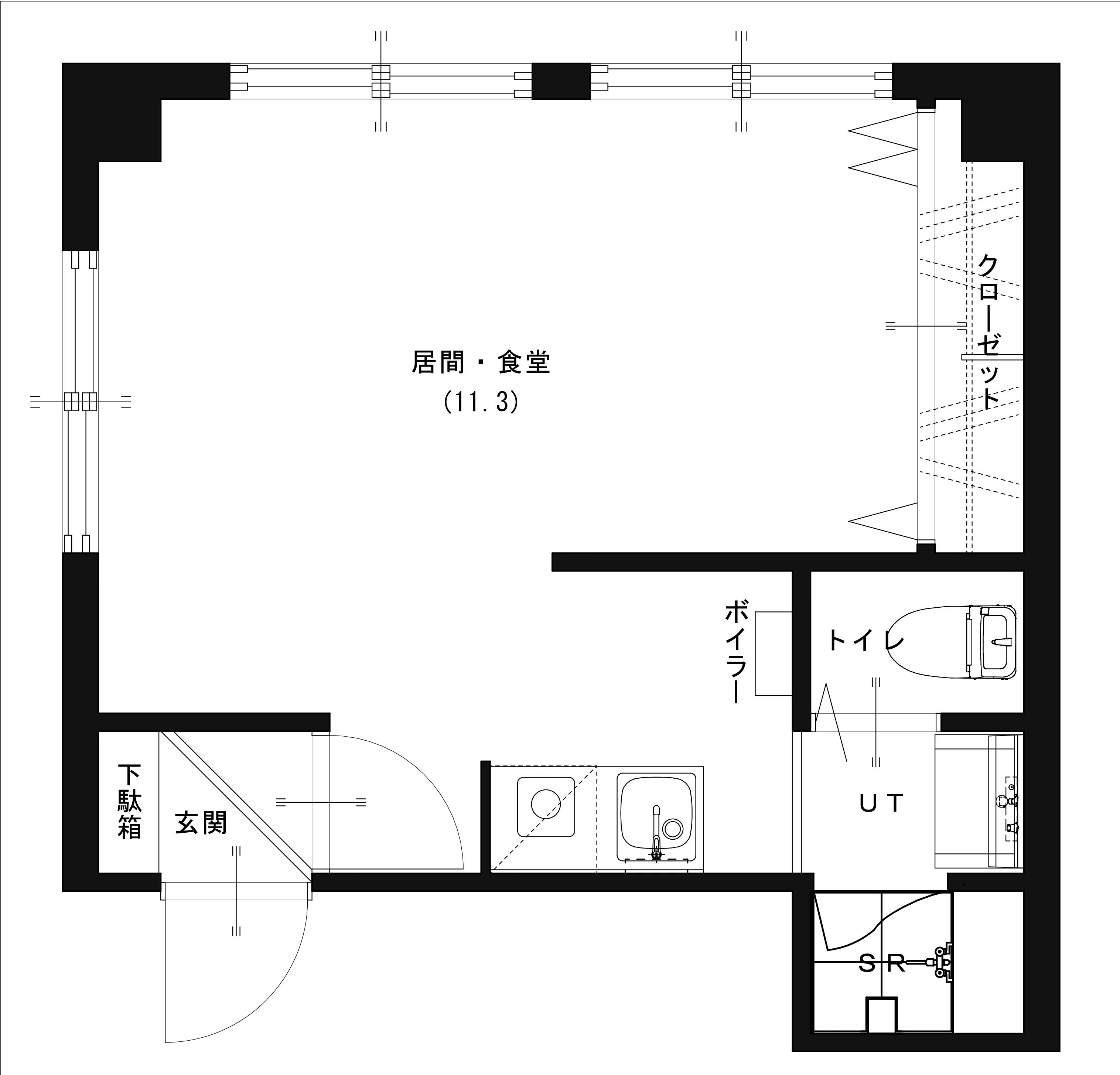 間仕切り壁を無くして部屋を広くし、トイレ・洗面・シャワールームは別々にして設備を一新しました。