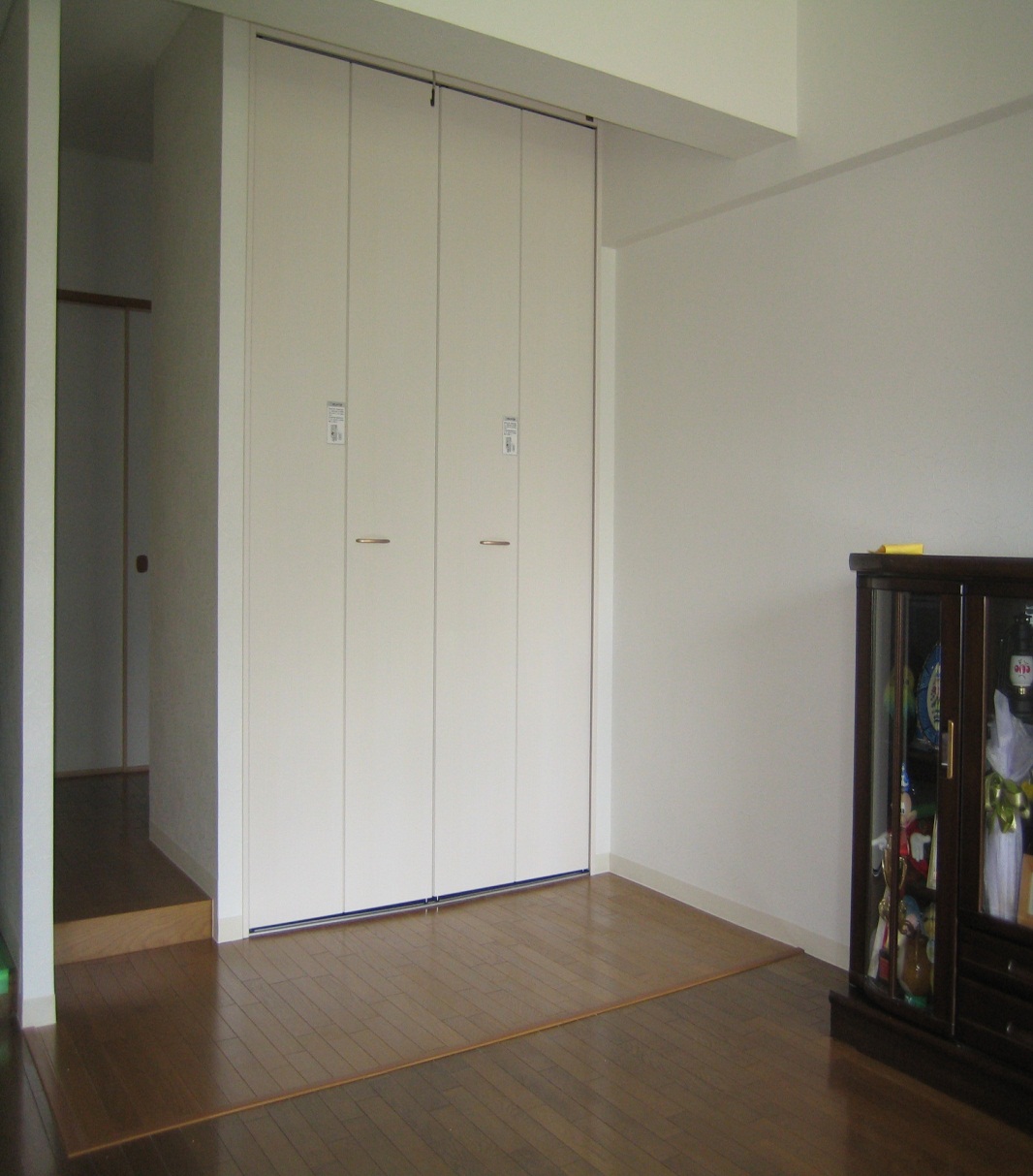 和室を改修し居間に面して大きなクローゼット、奥を収納スペースにして