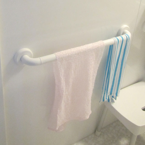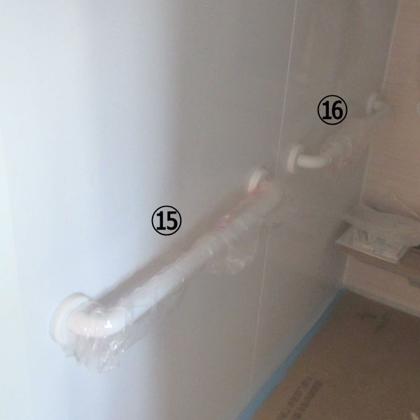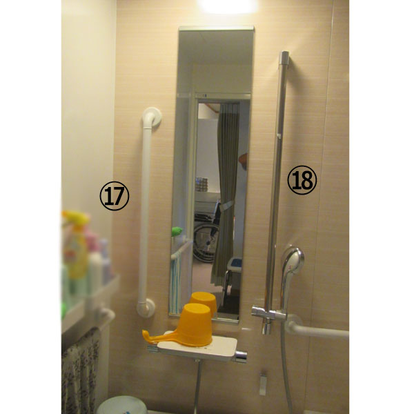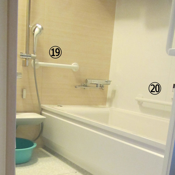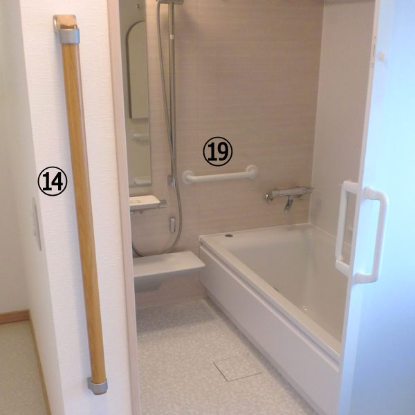 0.75坪から1坪タイプのユニットバスへ交換。引戸の入口、手摺設置で車椅子対応です。入口の段差もありません。