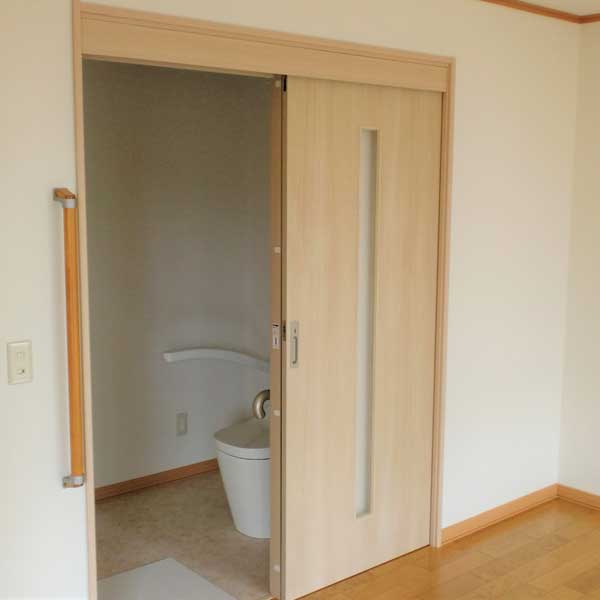 和室を洋室に変更し、隣接してトイレを増設しました。入口を引戸にしているので、車椅子のままで入れます。