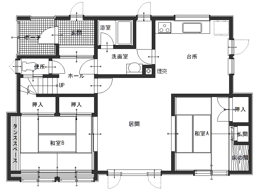 実例90恵庭市 O様邸 キッチントイレバスバリアフリー洗面台玄関